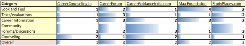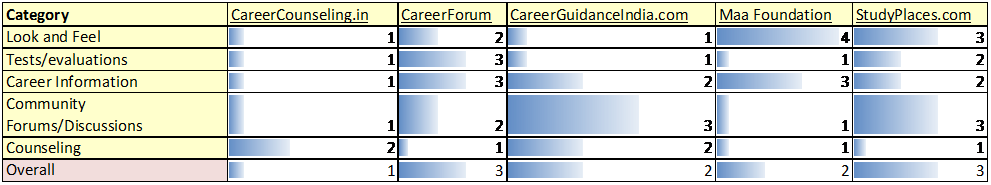 Here is what I tried: I looked up popular sites (based on search results and my review of local ads of these services in India), and proceeded to review their content, presentation and layout, and overall value they offer. In most cases, I had to register for the site, which I did rightfully. Based on what I saw on these sites and what I claim to know of career management, I started to capture comparison parameters to be used across sites. However, most sites fell woefully short of any reasonable utility value to their target audience.