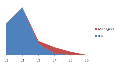 These phases exist because the number of ICs and managers in a typical org will look something like this (L1-L6 are just fictitious levels to illustrate the point):